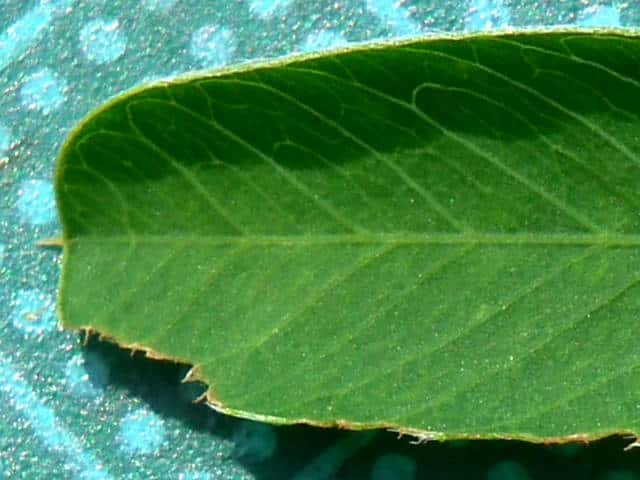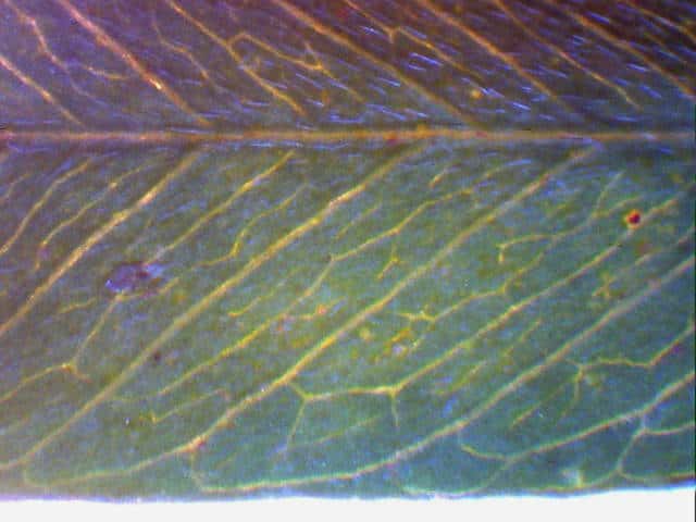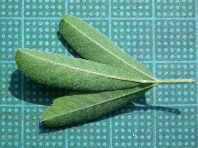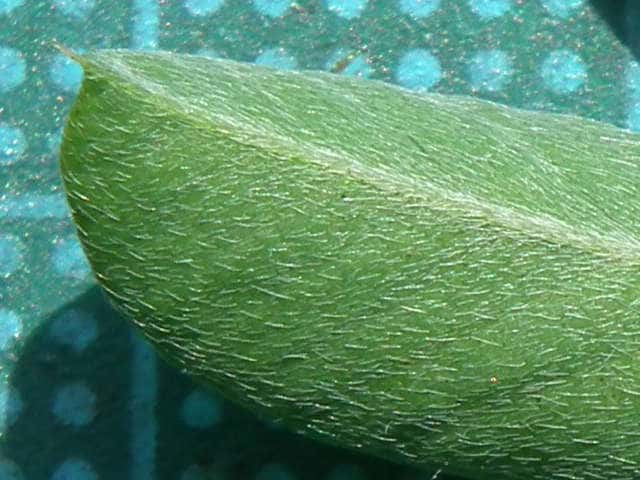 | ▼小葉の細脈(透過光)。 | ▼裏面には伏毛が密生する。 | |