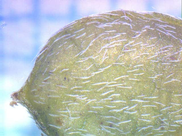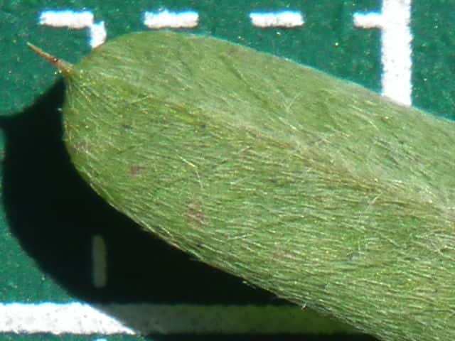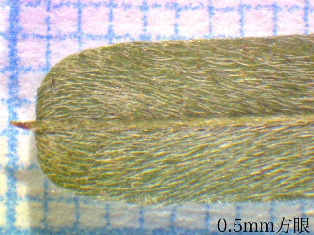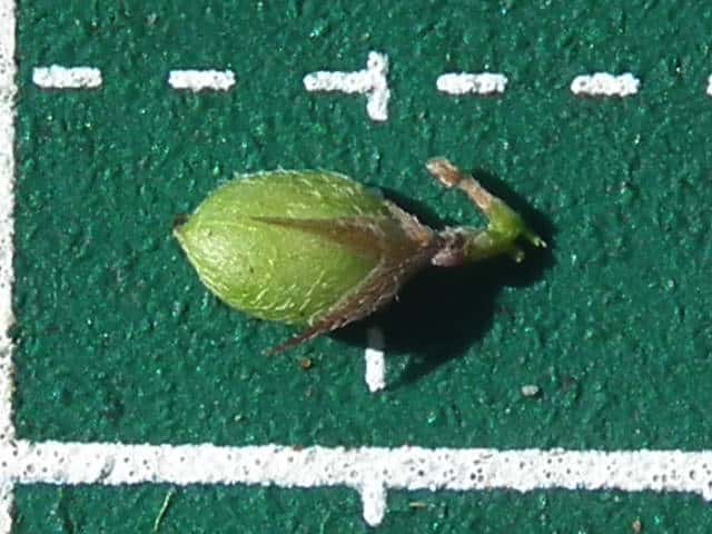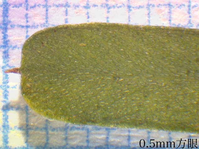 | ▼果実は長さ約3mm。 | ▼萼は長さ約2.5mm。 | ▼果実の表面には毛が散生する。 |