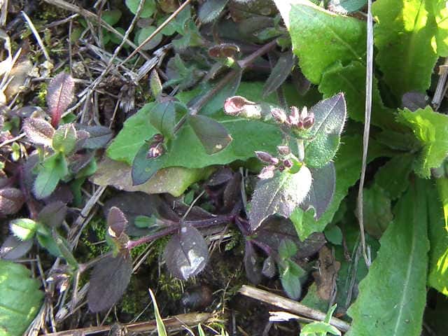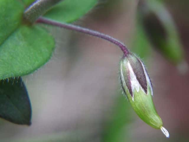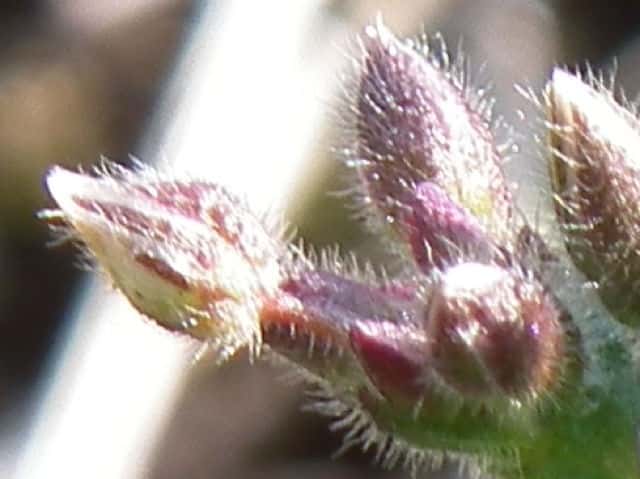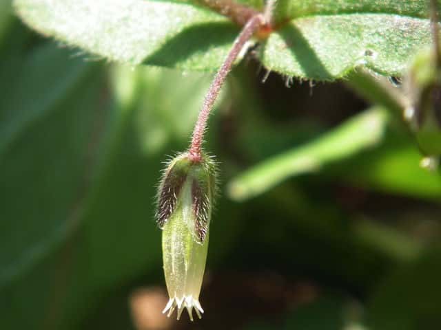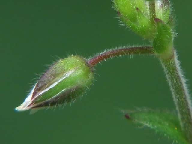 | ▼閉じた花の花弁は萼からほとんど出ない。 | ▼果柄は長くのび約1cm。 | |