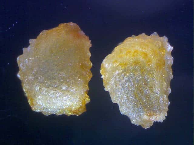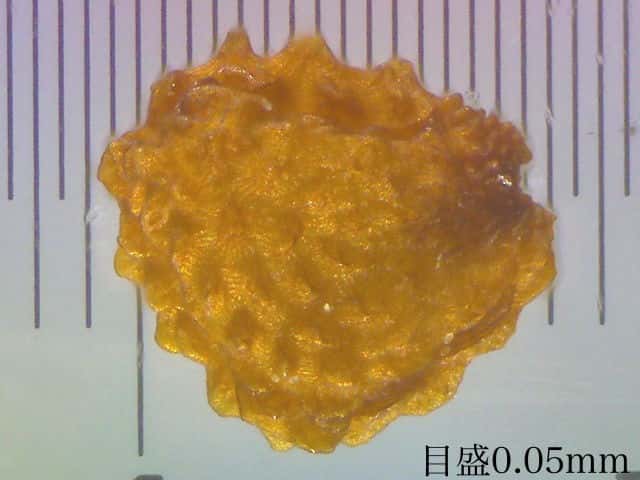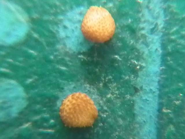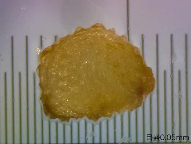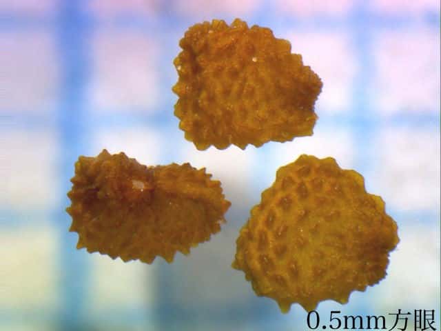 | ▼果実は長くなり約9mm、萼の2倍以上ある。 | ▼種子は41個入っていた。 | ▼表面に小突起がある。 |
