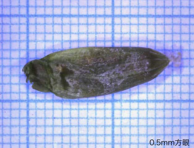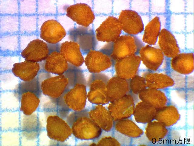 | ▼種子は長さ約0.85mm。オランダミミナグサ(0.6mm)より大きい。 | ▼オランダミミナグサの種子との比較。 | |