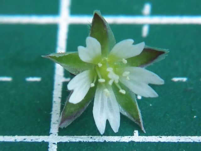 | ▼雄しべは10本ある。 | ▼花は直径約6mm、萼は直径約8mm。 | |