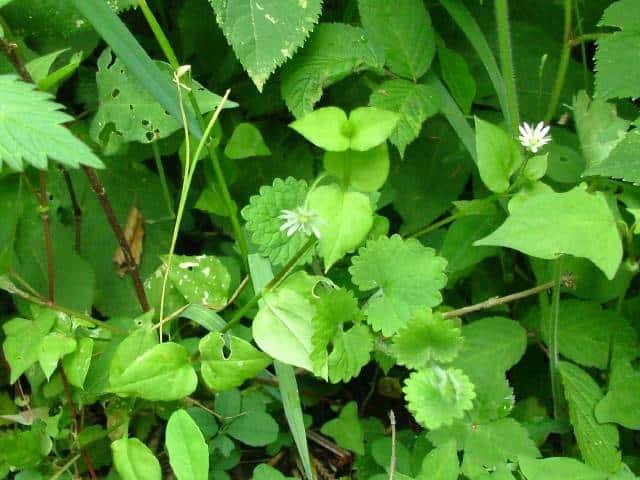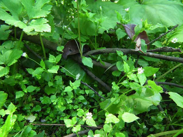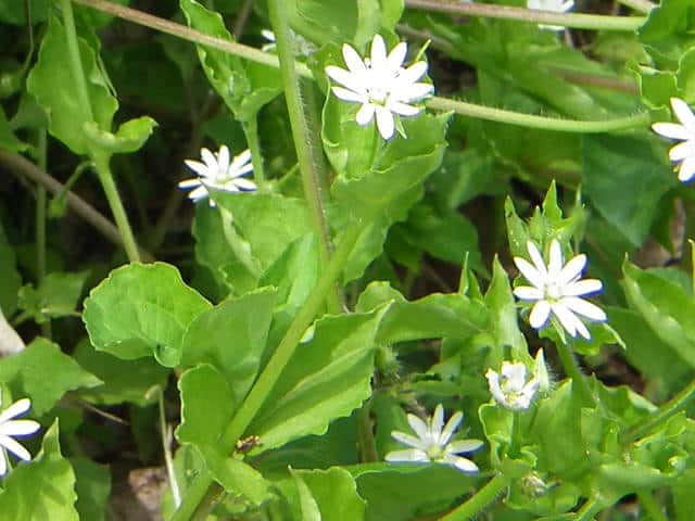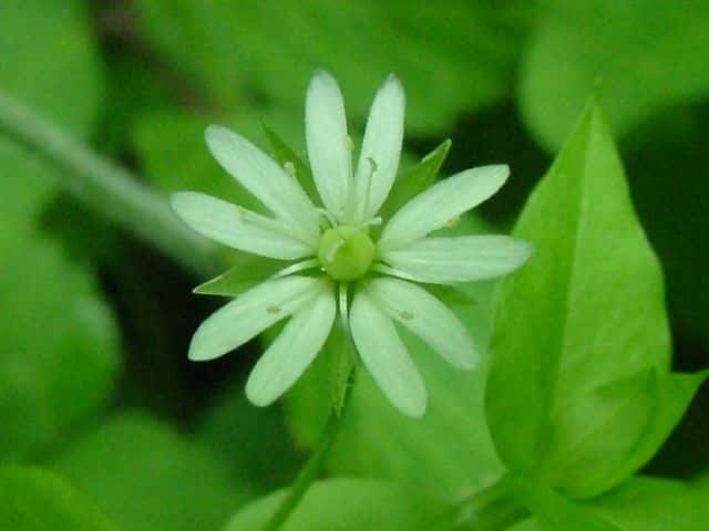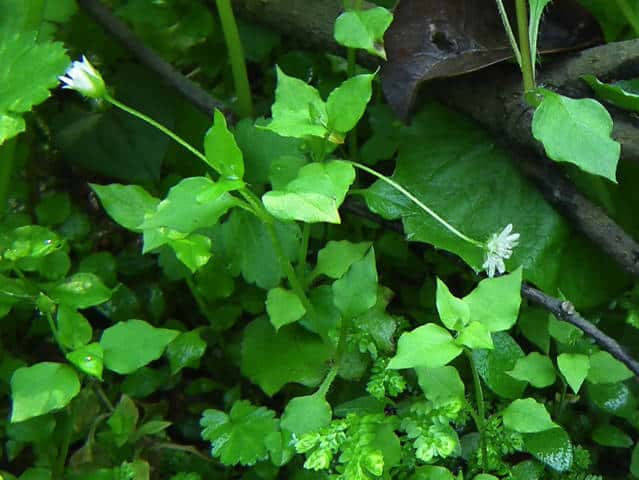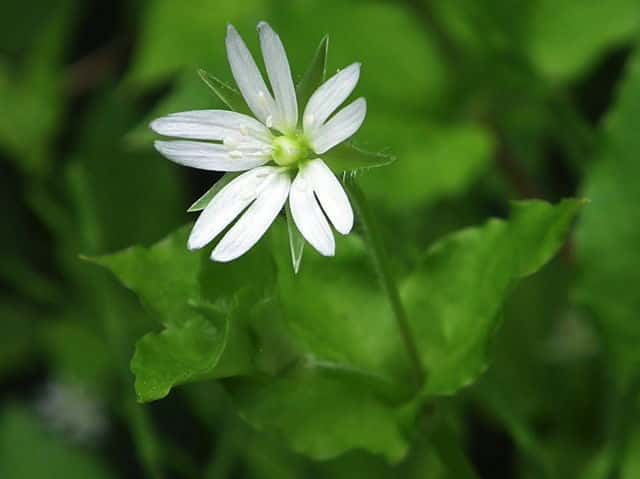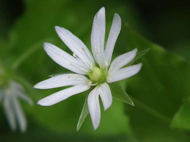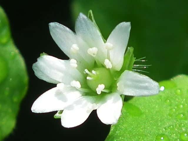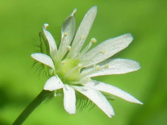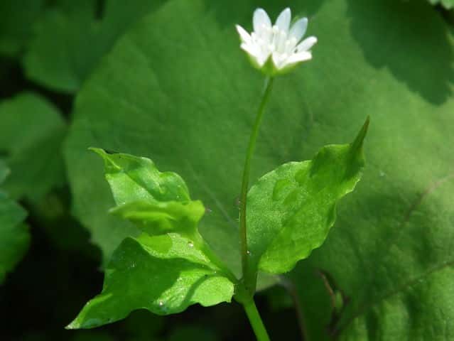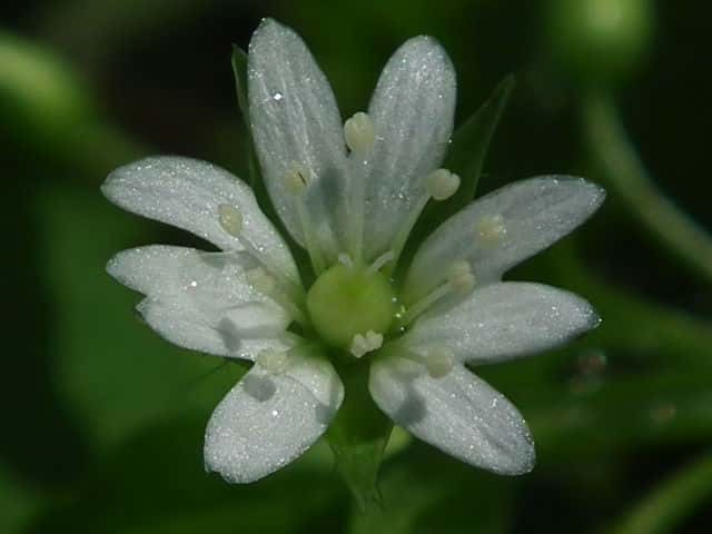 多年草 北海道西南部〜九州の山地谷沿いの湿地生える。茎は地をはい、上部は斜上し20〜40cm。2列の毛がある(南々社「広島の山野草」では1列の毛となっている。)。葉は黄緑色で対生し、広卵形で長さ1〜3.5cm。基部はやや心形。表面は無毛。裏面脈上に微毛がある。上部葉腋から有毛の柄をだし、直径1〜1.5cmの白花を開く。花弁5個は深く切れ込み、10弁に見える。花期は5〜7月。(山に咲く花) 学名は、Stellaria sessiliflora ナデシコ科ハコベ属 |