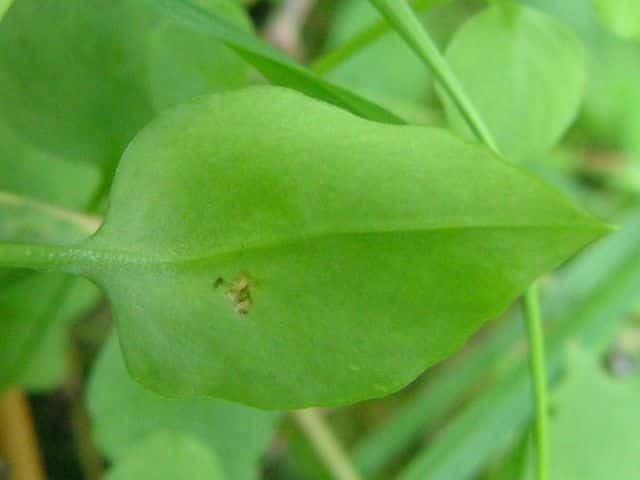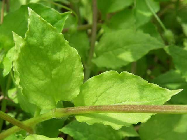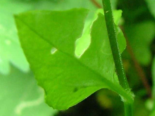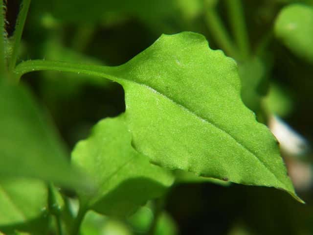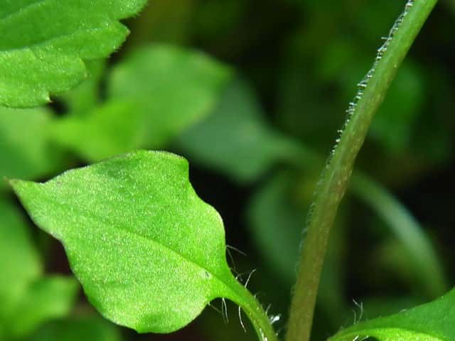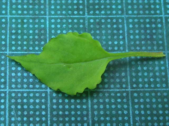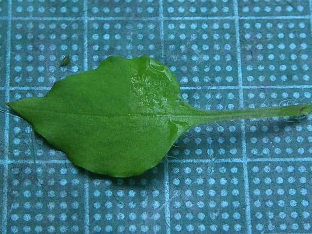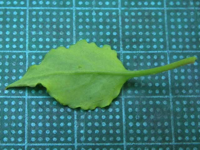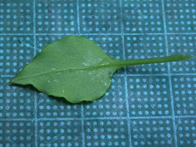 | ▼葉の縁や葉柄に毛がある。 | ▼表面は無毛。 | |