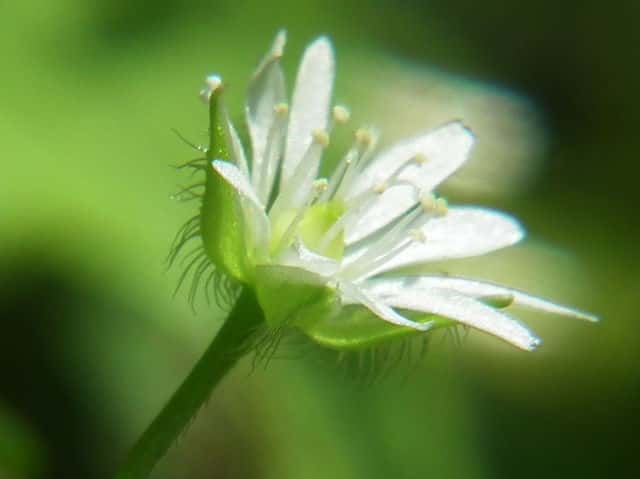 | ▼花は直径1cm程度。 | ▼茎に1列の毛しか確認できなかった。 | |