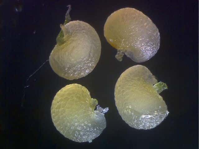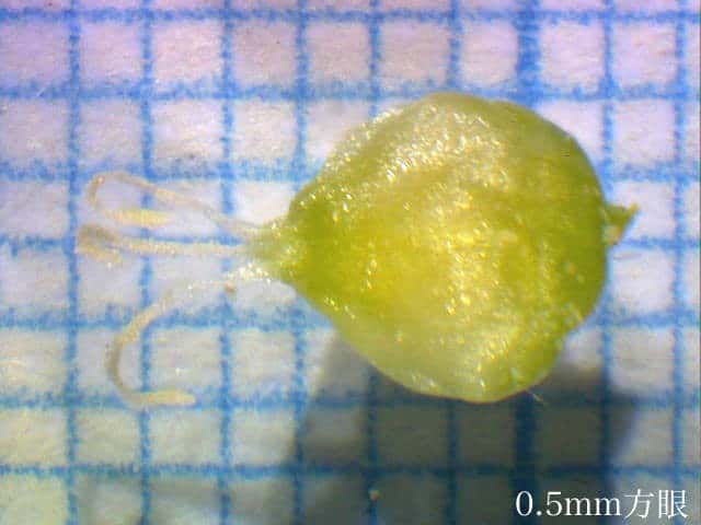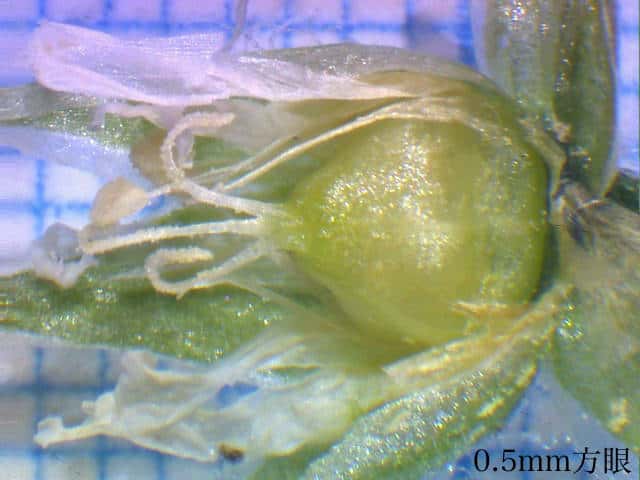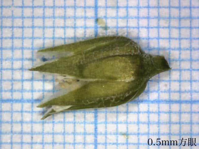 | ▼果実の中の種子。 | ▼若い種子は長さ約0.6mm。 | |