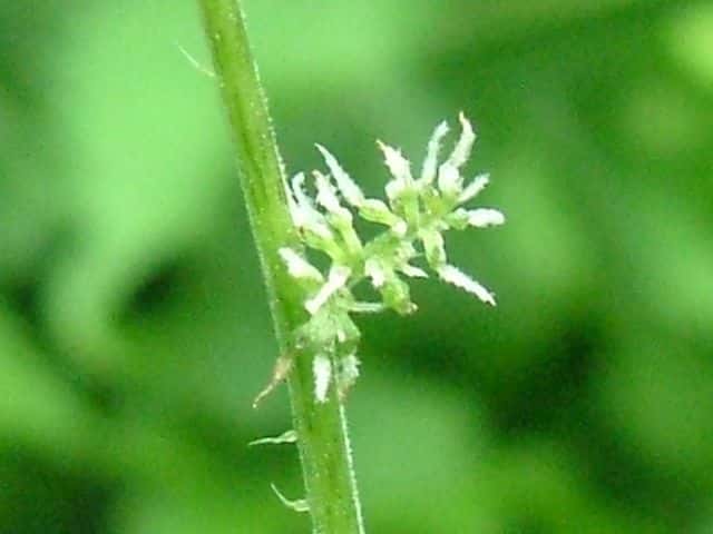 | ▼雌花は上部に直立し、雄花は葉腋につく。 | ||