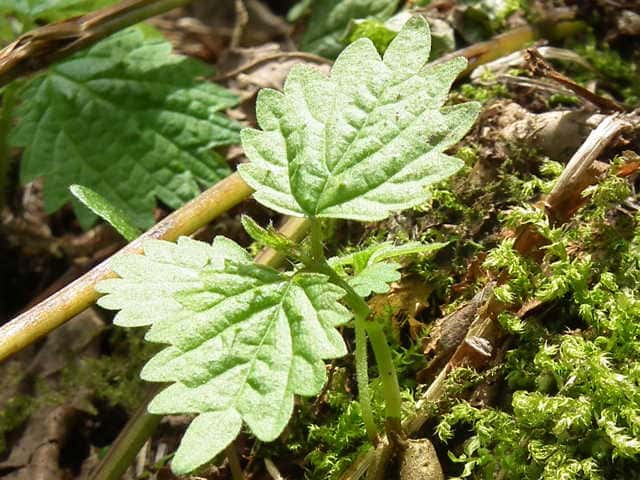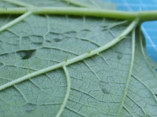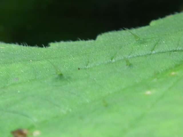 | ▼葉の表面に刺がある。 | ▼葉の裏面葉脈に刺がある。 | |