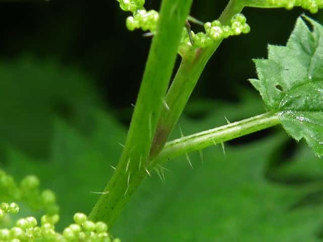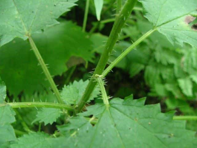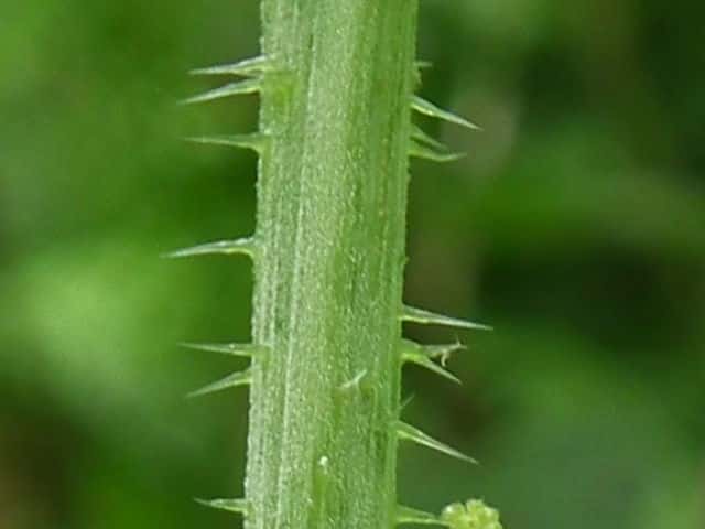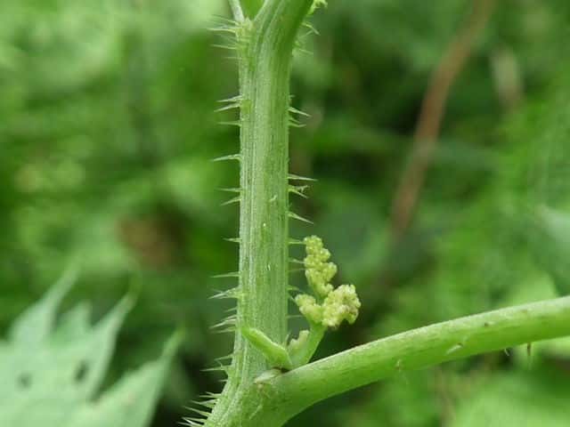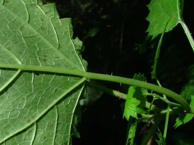 | ▼裏面の脈上に刺がある。 | ▼茎に刺が密生する。 | |