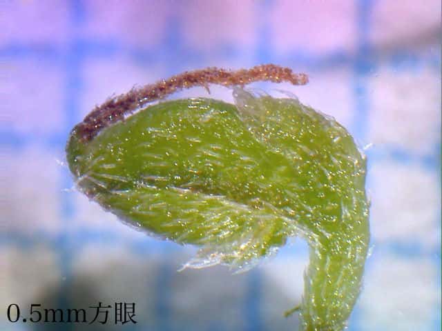 | ▼2013年7月17日 雌花 八雲 | ▼柄のある長さ約0.7mmの子房から長さ約1.5mmの柱頭が伸びる。 | |