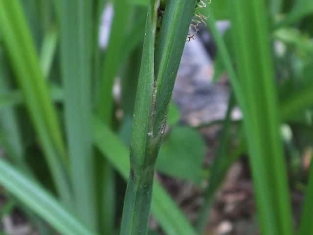 | ▼苞は長い葉身がある。 | ▼最下の苞にもほとんど鞘がない。 | |