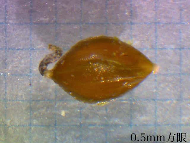 | ▼果実は3稜形、長さ約2mm。 | ▼果実の頂部は嘴状になる。 | |