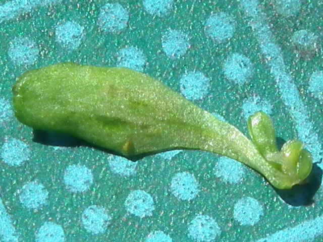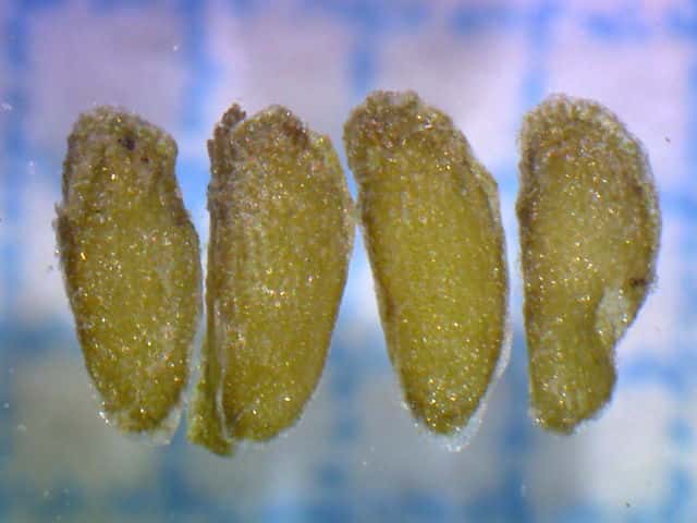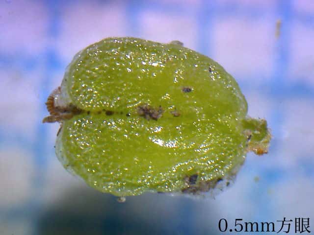 | ▼若い果実。周囲に翼がある。 | ▼果実は長さ約1.1mm。 | |