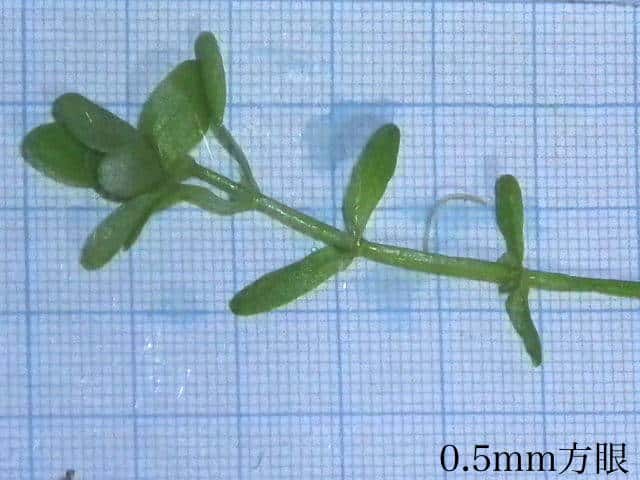 | ▼水中の線形の葉は長さ約6mm、幅約1.5mm。 | ||