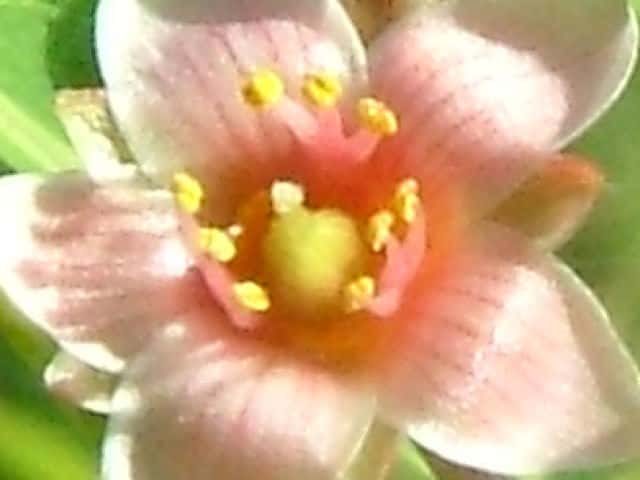 | 果実は長さ約1cm。 | ▼果実の縦断面。 | ▼果実の横断面、3室ある。直径約4mm。 |