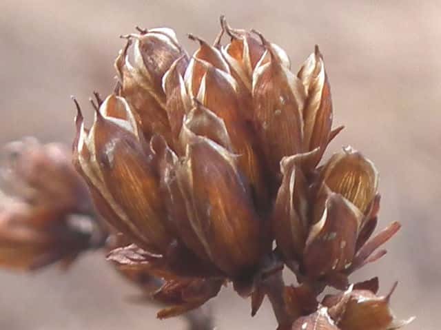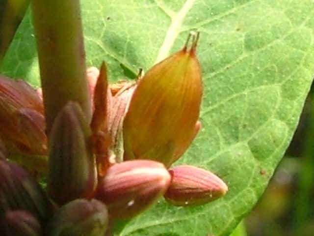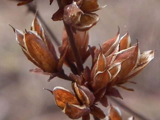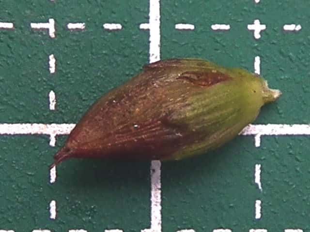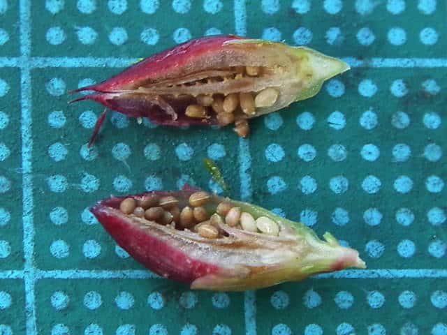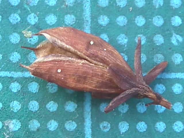 | ▼果実は長さ約1cm。 | ▼果実は熟すと先端が3裂する。 | ▼種子は長さ約1mm。 |