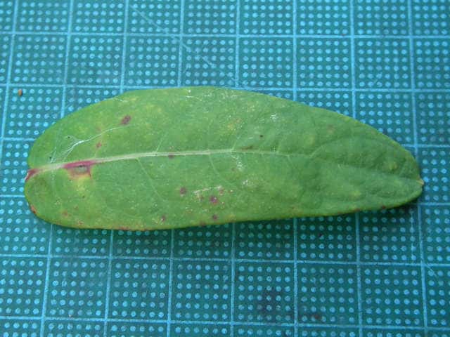 | ▼茎は無毛。 | ▼葉は長さ約7cm。 | ▼表面は無毛、明点がある。 |