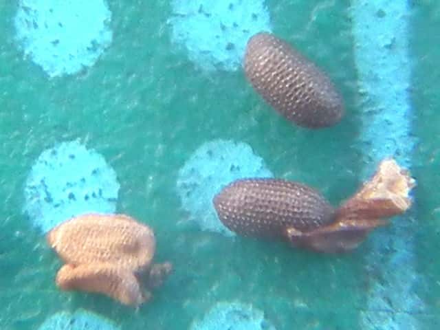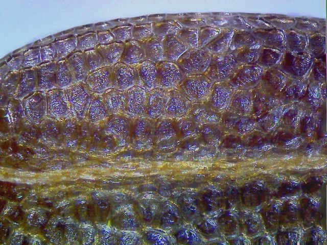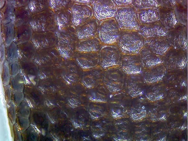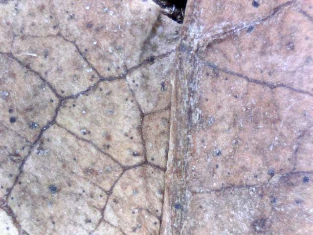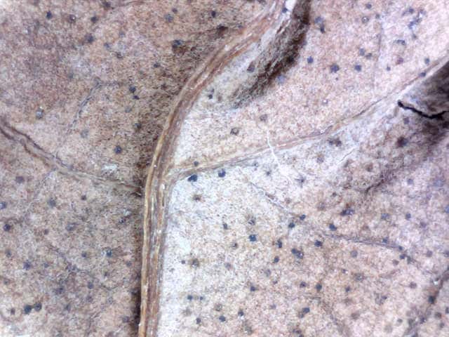 | ▼種子の表面の拡大。 | ▼枯葉、長さ約4cm、葉の表面。 | |