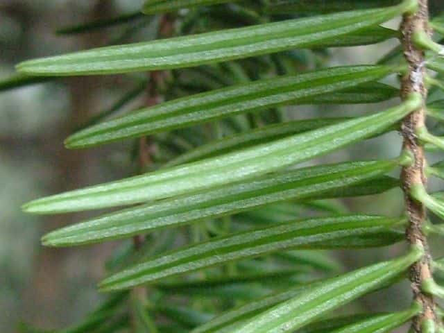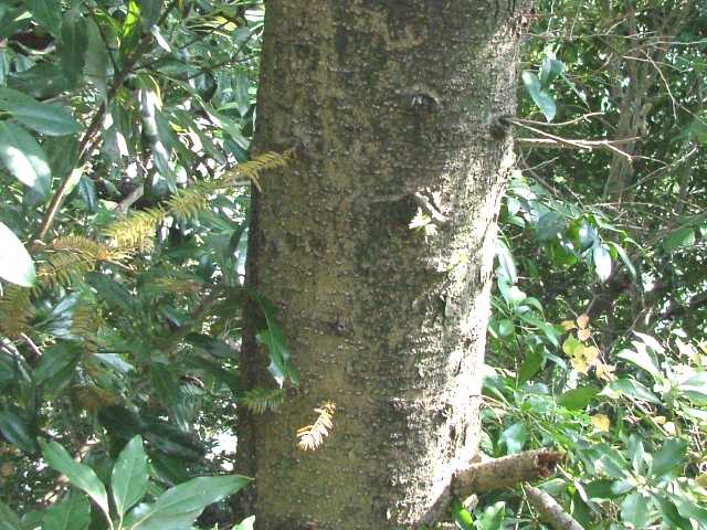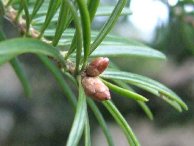| ▼葉裏の気孔帯は目立たない。 | ▼雄花は前年枝の葉腋につく。 | |