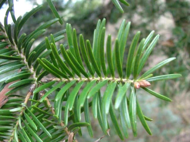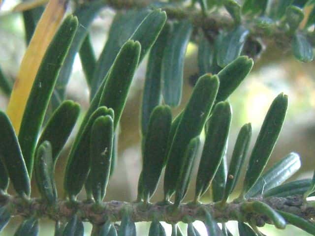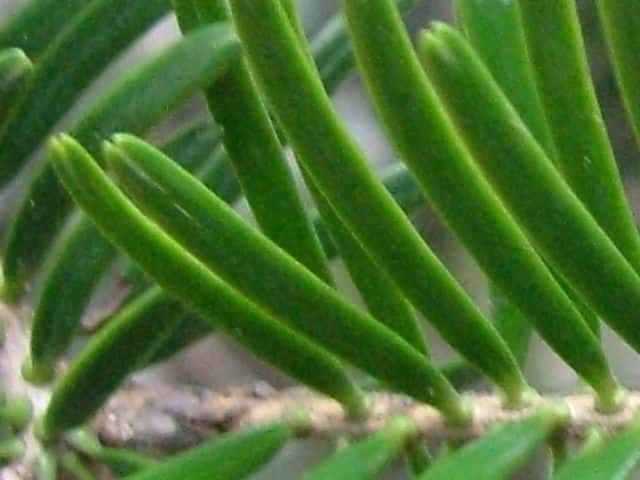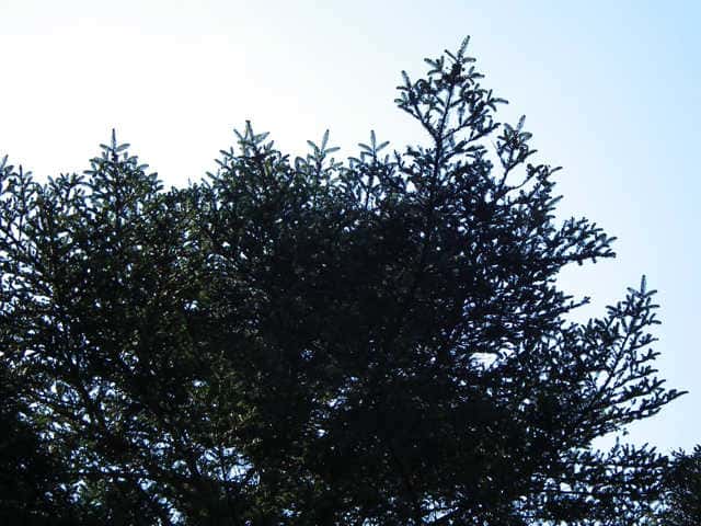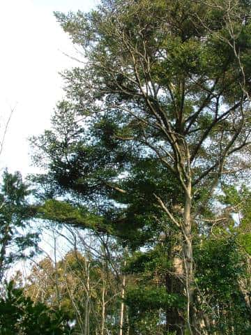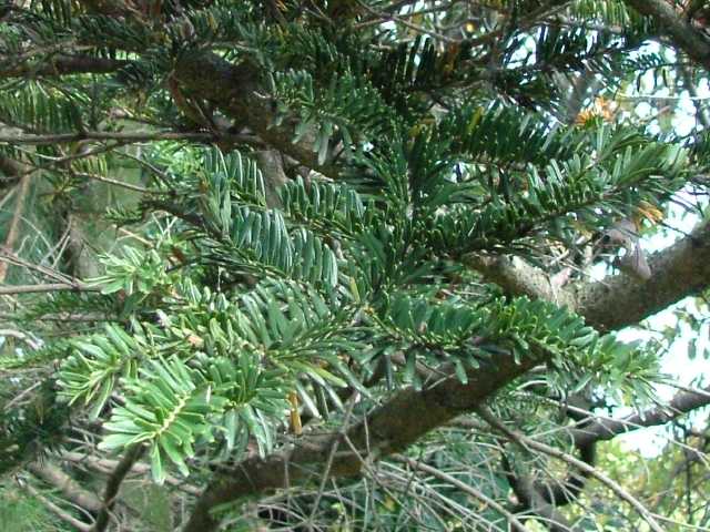 | 常緑高木 本州〜九州の海岸近くの丘陵からブナ帯上部のまで生育し、上部でウラジロモミと入れかわる。高さ25m、直径1mに達する。樹冠は円錐形。初期の成長は遅いが、のちに速くなる。樹皮は灰白色。平滑または浅く割れる。ところどころに横長のヤニ袋が見られる。若い枝には短毛がある。葉は長さ2〜3cmの線形で、先端はわずかに凹む。上部の枝や光が十分当たる枝では螺旋状につく。若木やあまり日の当たらない枝では2列に並んでつき、葉の先端が2裂して、針状に鋭く尖る。葉枕は発達しない。雌雄同株。雄花は黄緑色。果実は球果。長さ6〜10cm, 直径約3cmの円柱形。くすんだ緑色で、苞鱗が長く突き出て、らせん状に並ぶ。同一個体でも、右回り、左回りの両方が見られる。種鱗は長さ約2.5cm、種子は長さ5〜10mm、種子本体より長い翼がある。開花した年の10月頃に熟すと、種鱗は中軸からがずれて飛散する。3年に1度くらい開花結実する。花期は5月頃。 冬芽の葉芽は卵形で先はとがる。(樹に咲く花) 学名は、Abies firma マツ科モミ属 |
