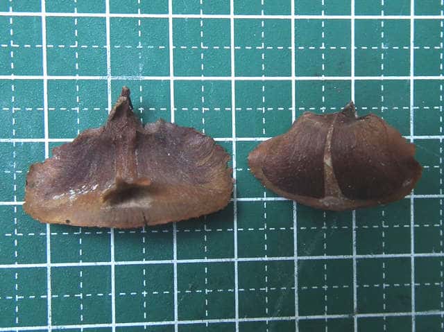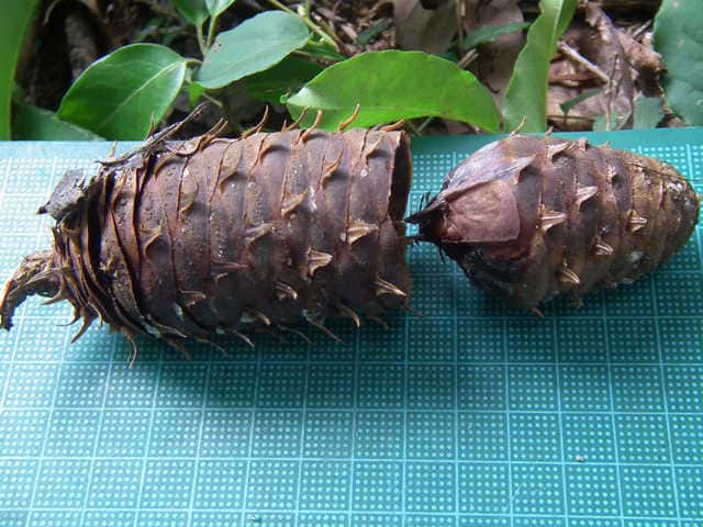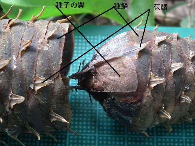 | ▼種子の裏面。 | ▼種鱗は長さ約2cm。 | |