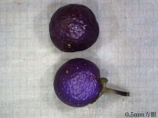 | ▼果実は直径約3.5mm。 | ▼果皮に腺点がある。 | |