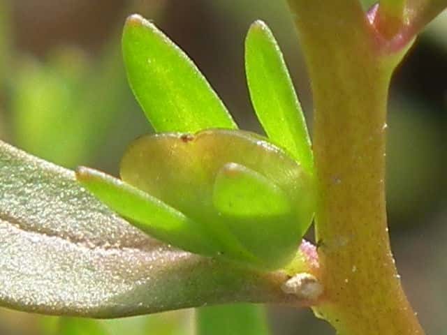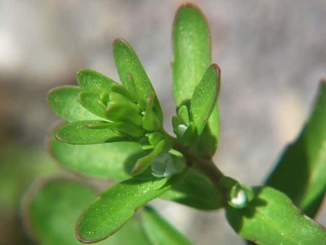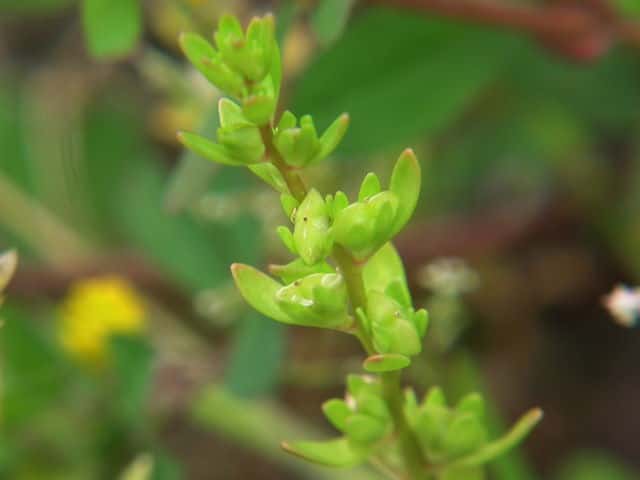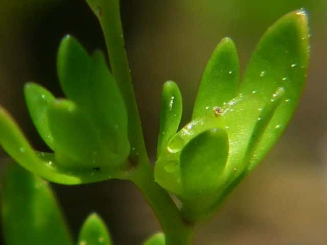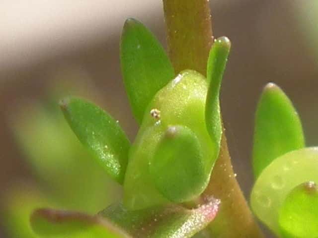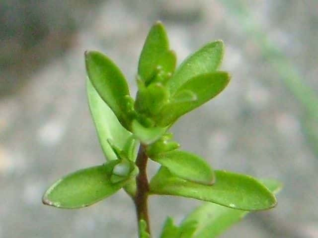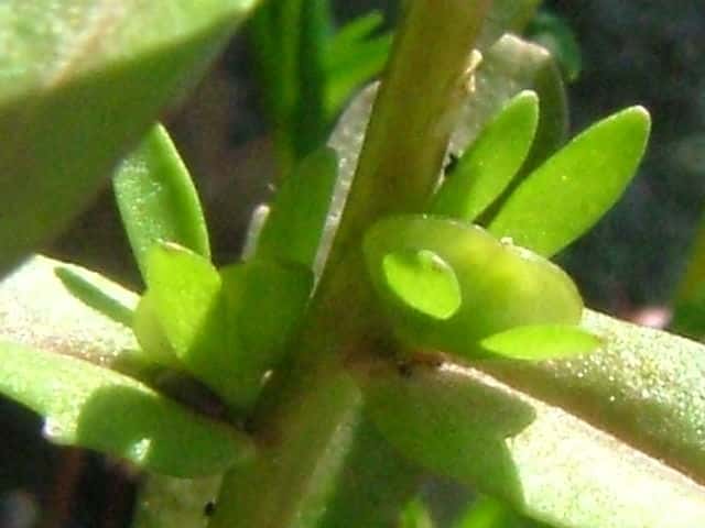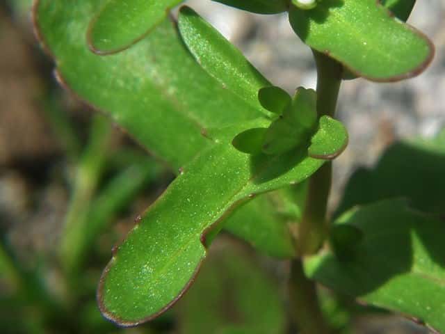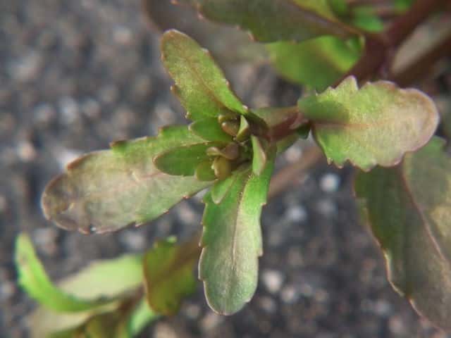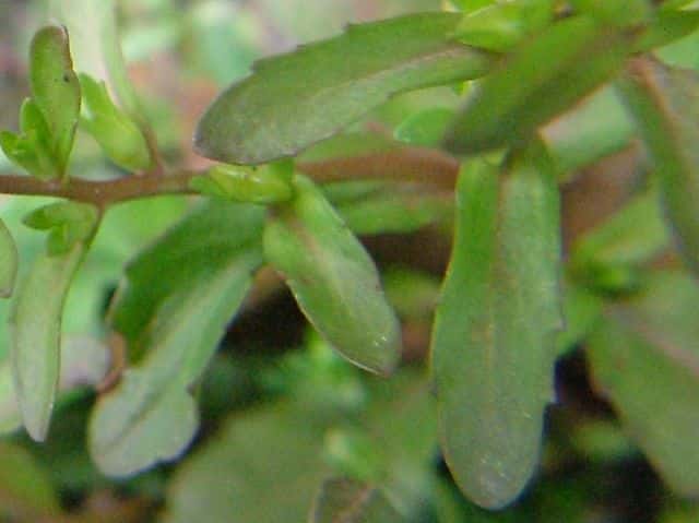 | ▼下部の葉、鋸歯があり、長さ約1.5cm。 | ||
