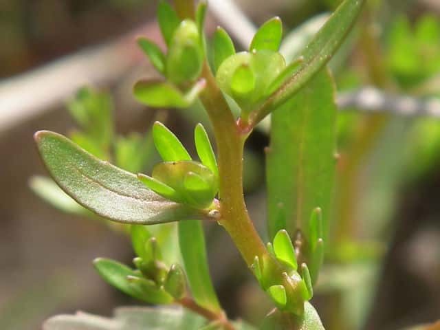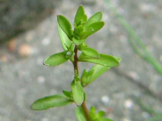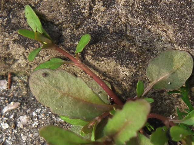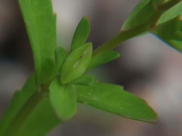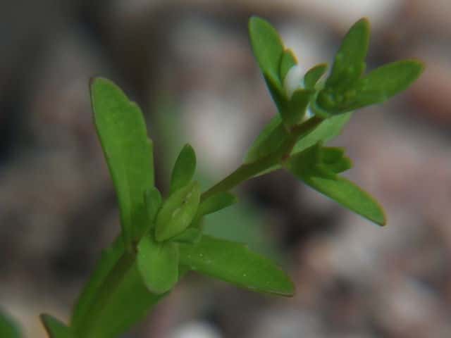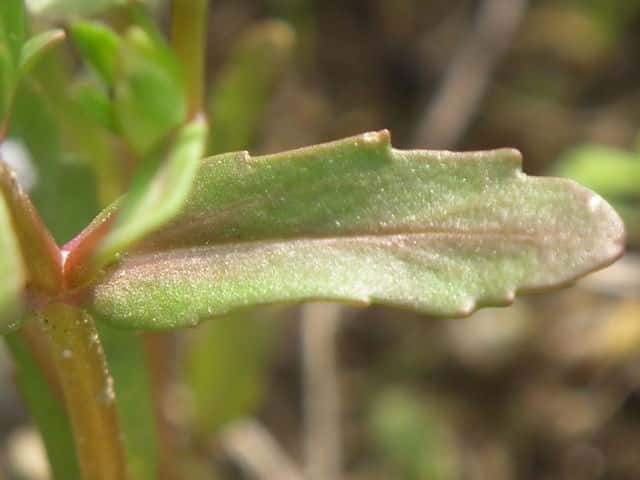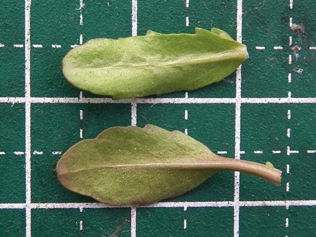 | ▼基部の葉には葉柄がある。 | ▼中部の葉は長さ約1.7cm。基部の葉は柄がある。 | |