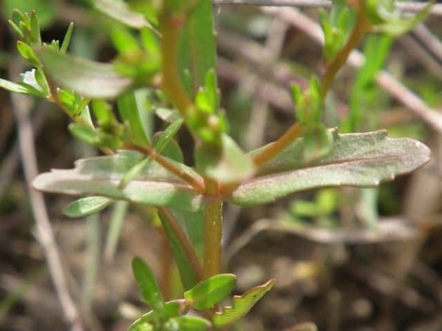 | ▼中部の葉は鋸歯があり、対生する。 | ▼上部の葉は全縁、互生する。 | |