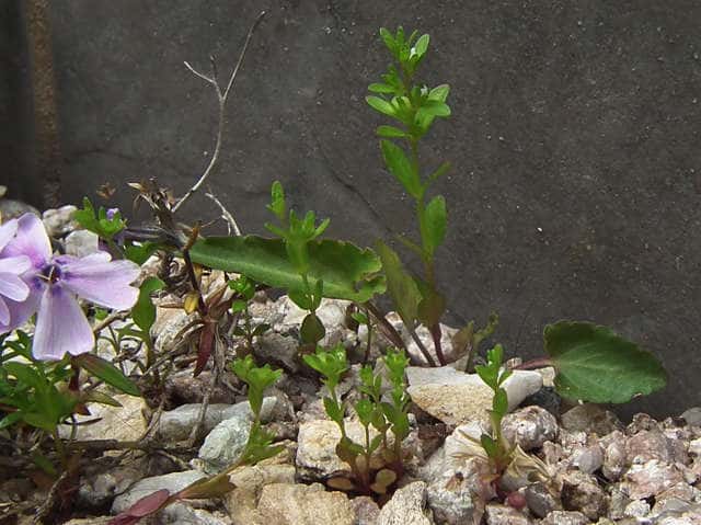 | 本来ムシクサは湿った場所に生えるが、以下の画像はアスファルト道路の縁に生えているもので、別系統の帰化植物である可能性が指摘されているものなのかもしれない。 |