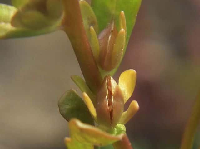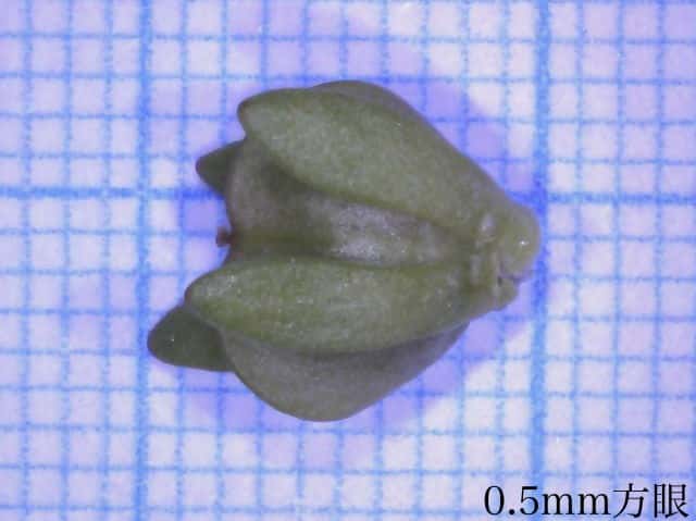 | ▼萼に包まれた果実。 | ▼果実は長さ約3mm。 | |