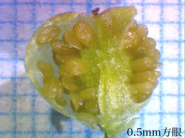 | ▼未熟な種子。 | ▼未熟な種子は長さ約0.7mm。 | |