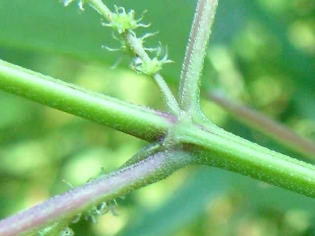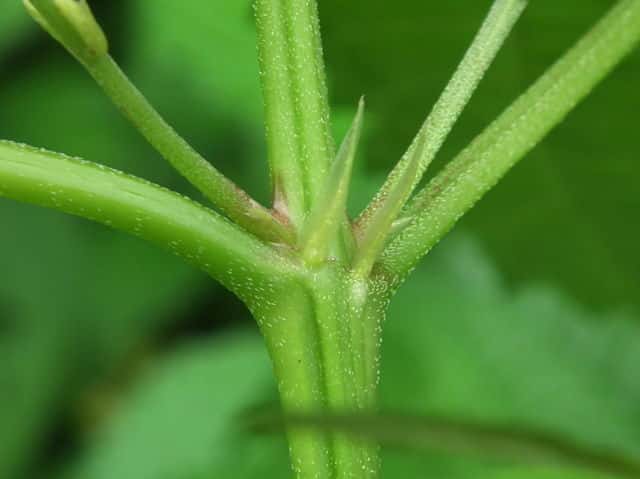 | ▼葉の裏面は無毛。 | ▼茎には微毛がある。 | |