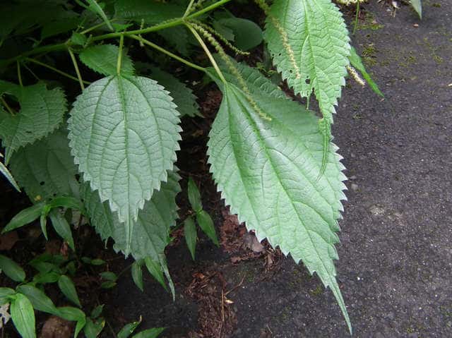 | ▼全体に葉の幅が広く円形に近く見え、ナガバという名前があたらない。ヒロナガバヤブマオ(Boehmeria sieboldiana var. ovata)というものがあるらしいが、詳細が不明。 |