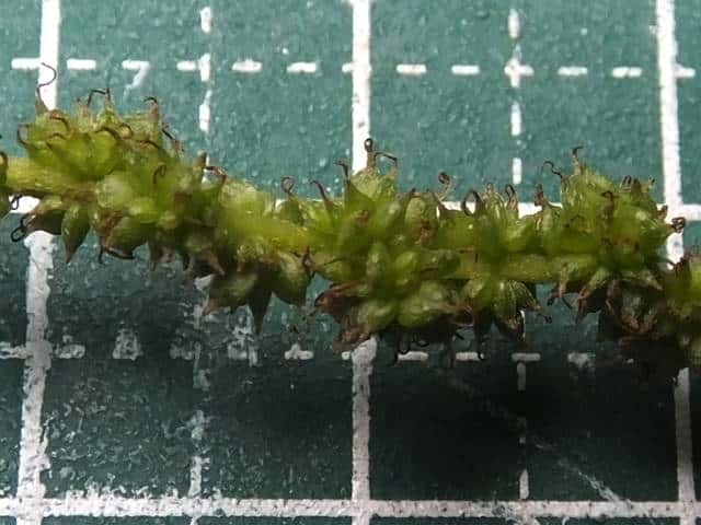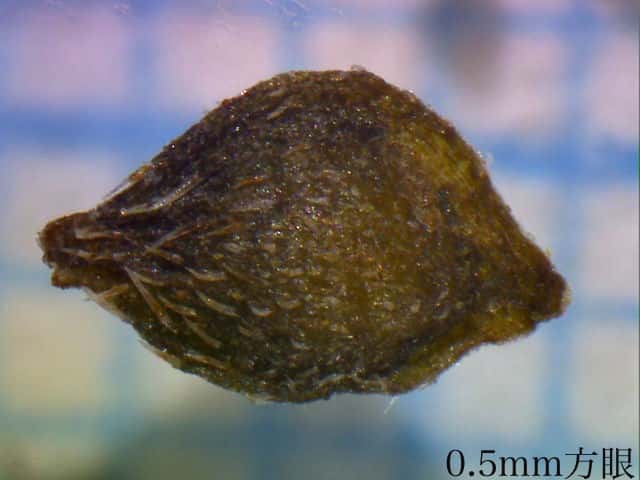 | ▼果実は花被に包まれ、長さ1.5〜2mm。 | ▼花被を除いた果実、長さ約1mm。 | |