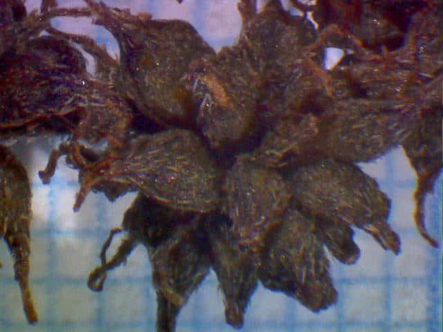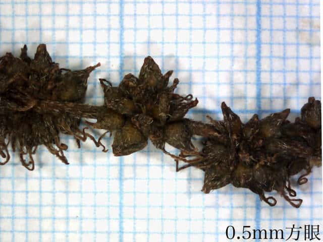 | ▼乾燥した果序、直径4〜5mmの球状になる。 | ||