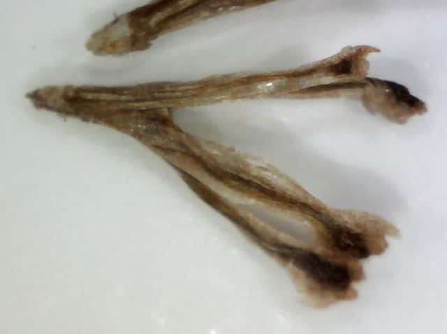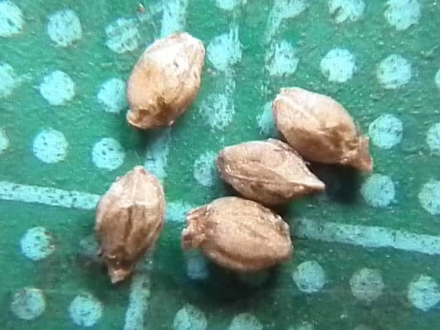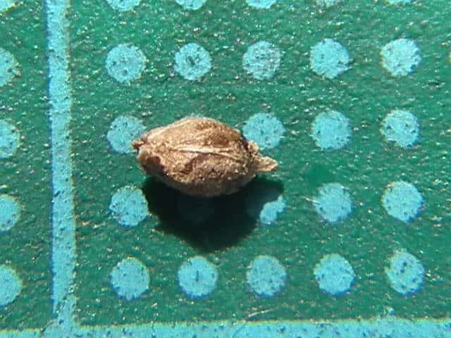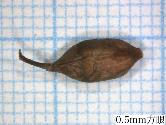 | ▼果皮の中はスポンジ状のものがある。 | ▼果実には種子が1個入る。 | ▼種子は長さ約2.5mm。 |