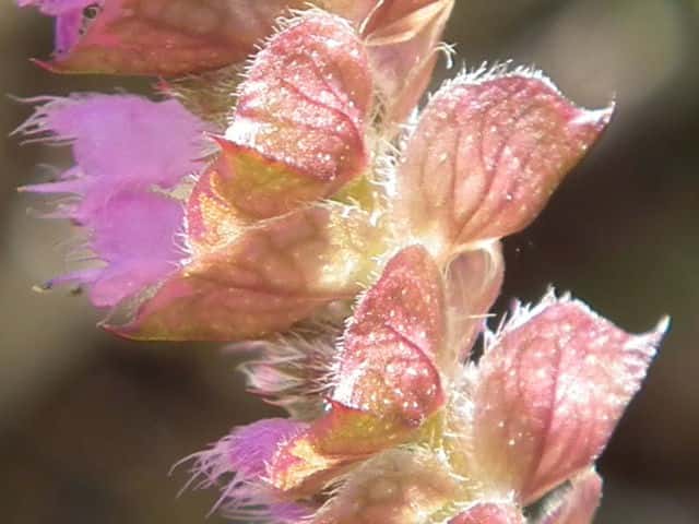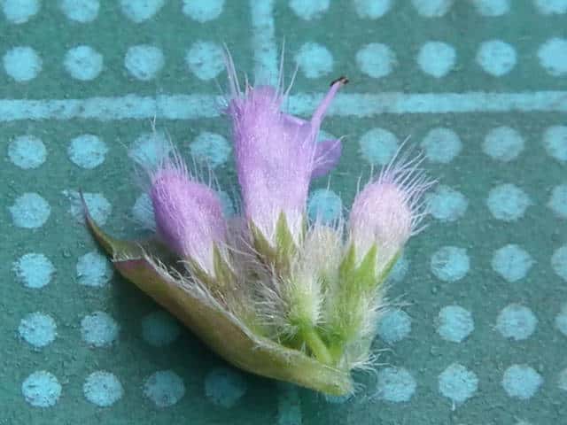 | ▼萼は長さ約4mm、毛が密生する。 | ▼萼に腺点がある。 | |