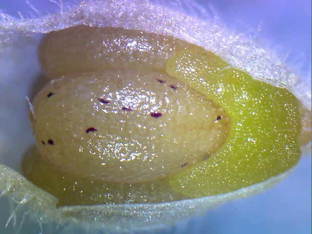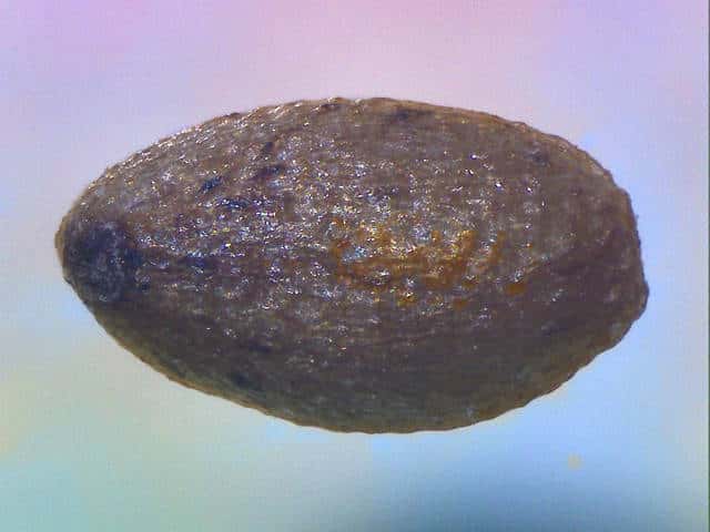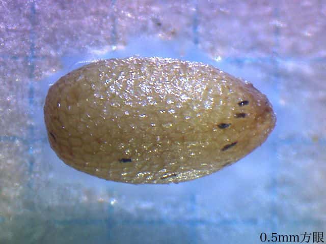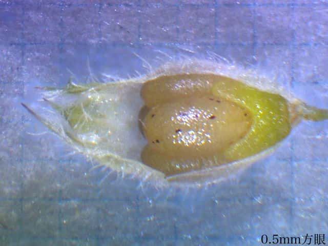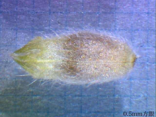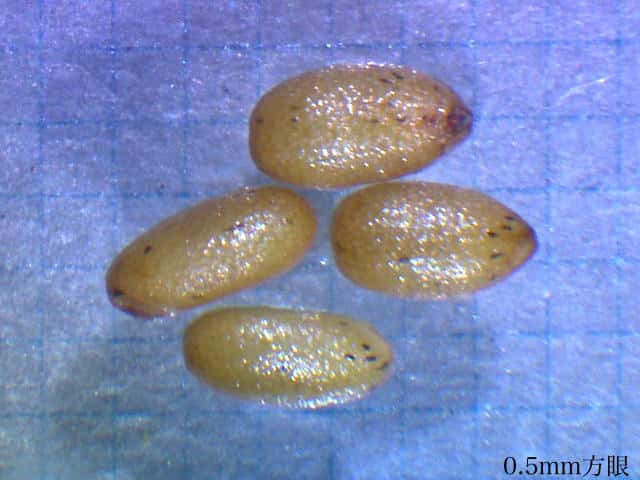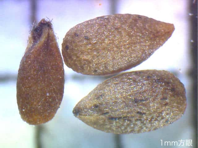 | ▼果実は、長さ約1.5mm。 | ▼果実の表面に網目模様がある。 | |