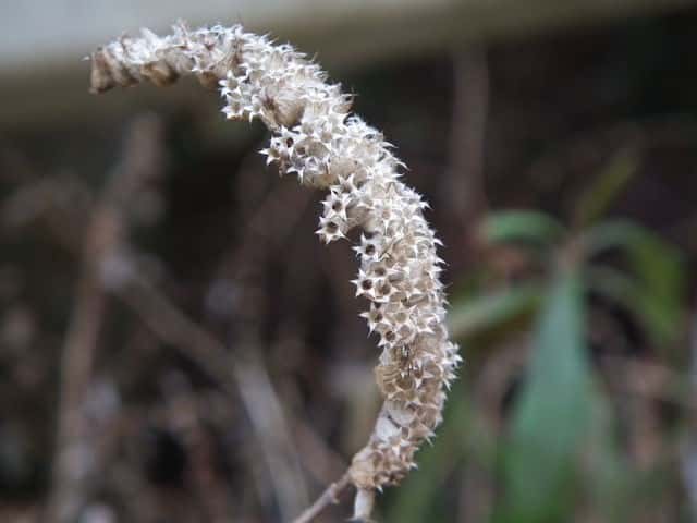 | ▼2013年2月14日 果実 島根 | ▼萼の中に4分果がある。 | ▼花序の裏側。苞が並ぶ。 |