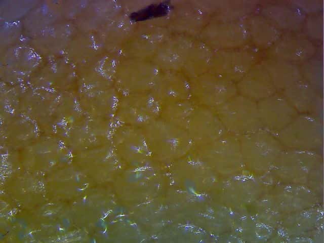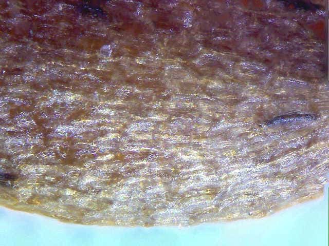 | ▼果実は長さ約1.5mm。 | ▼表面の拡大。網目状の模様がある。 | |