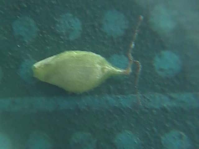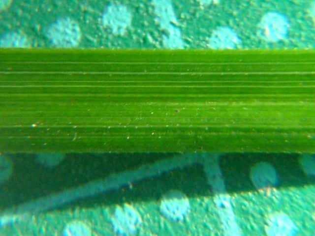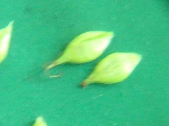 | ▼果胞は長さ約3mm。 | ▼葉の表面。 | ▼葉の裏面。 |