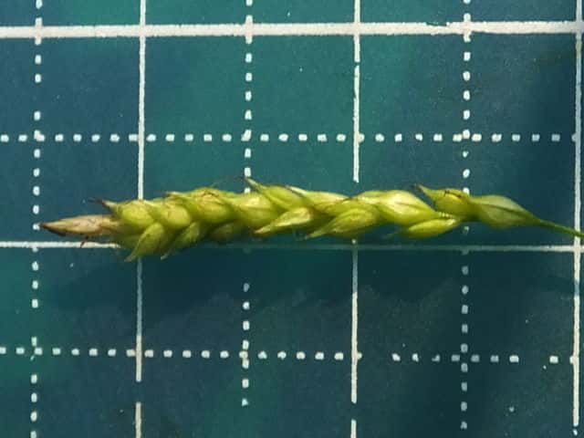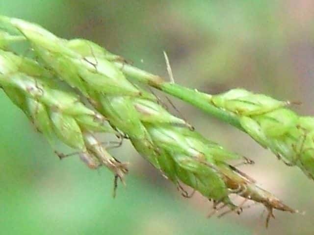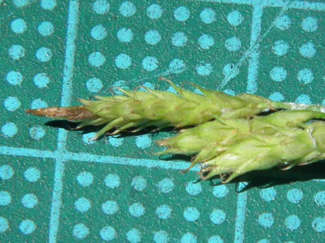| ▼小穂は長さ約2.3cm。 | ▼小穂の先端に雄性部がある雄雌性。 | |