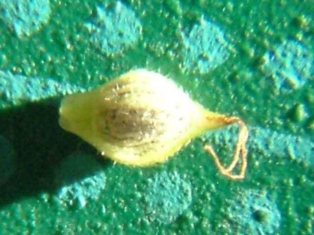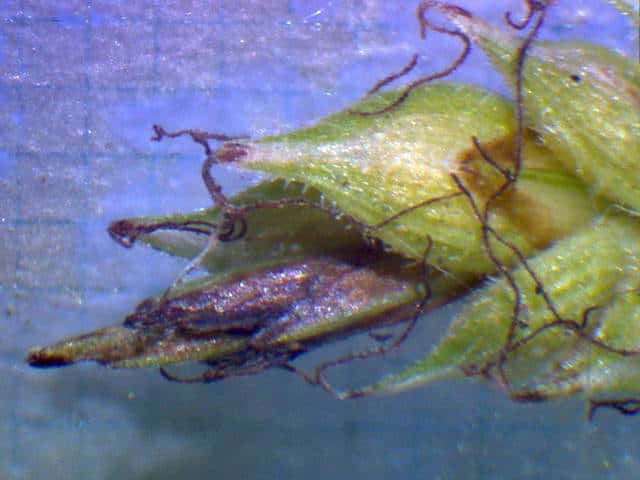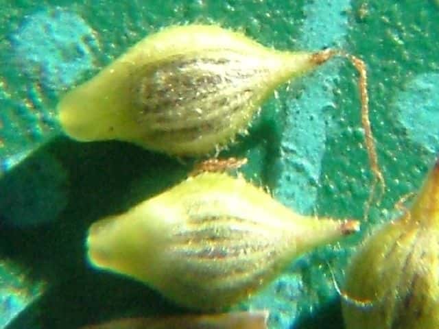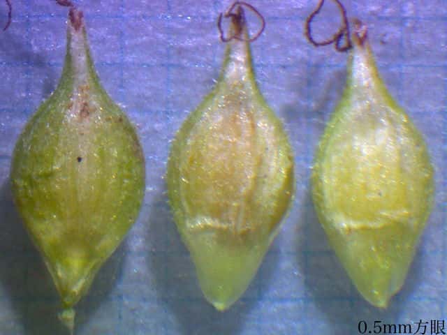 | ▼果胞は長さ約3.1mm。 | ▼果胞は開出する毛が多い、口部は2歯。 | ▼果実は長さ約1.6mm |