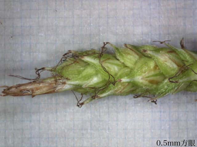 | ▼小穂は長さ約2.3cm。 | ▼雄花部は長さ約4mm、小穂の幅約3mm。 | |