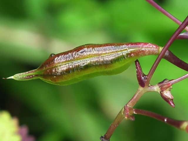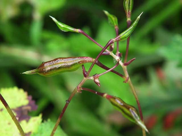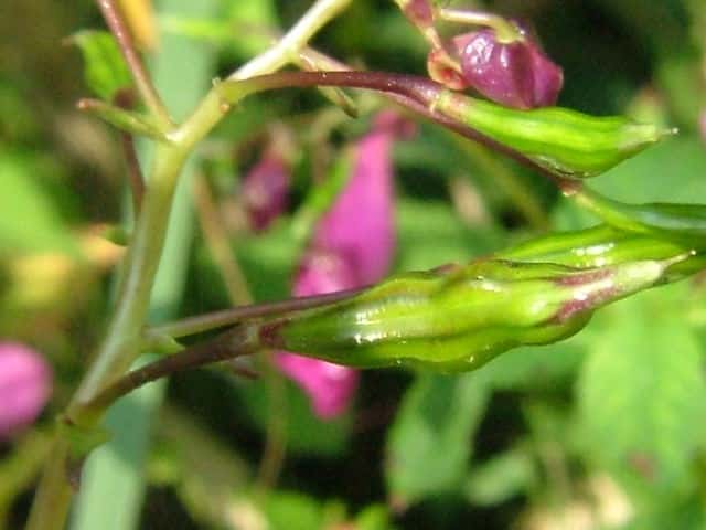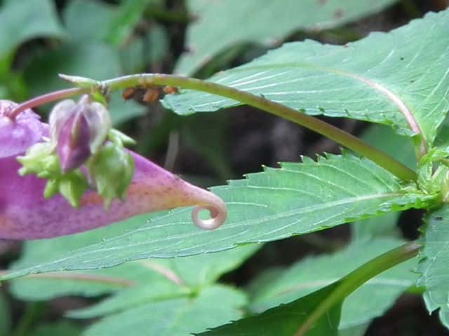 | ▼果実は長さ約2cm。 | ▼熟した果実は触れると果皮がくるまって種子を飛ばす。 | |