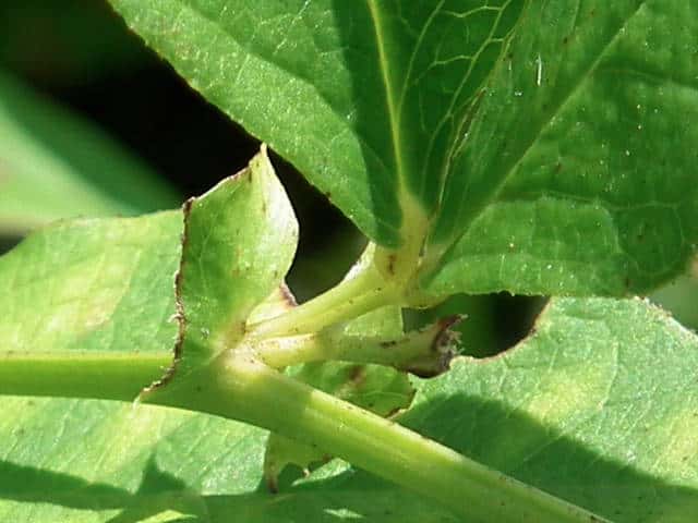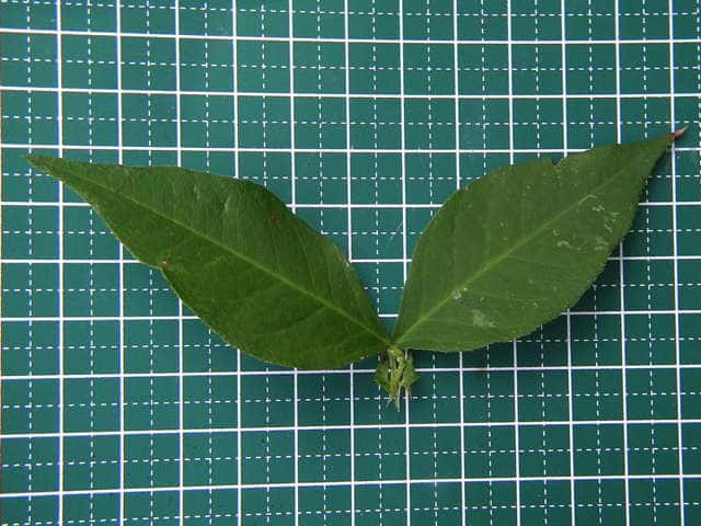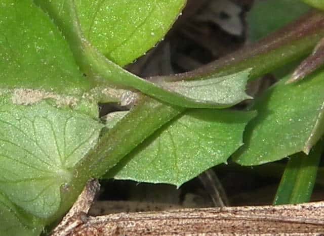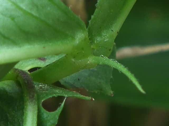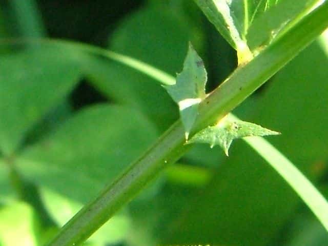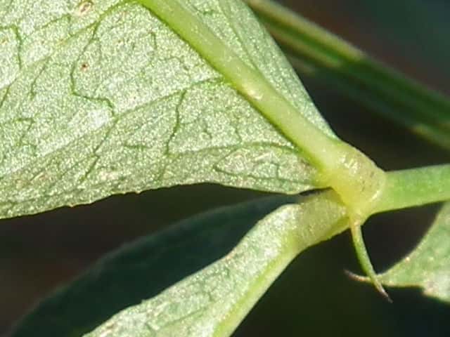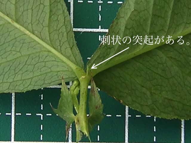 | ▼小葉の付け根の裏に刺のようなものがある。 | ||