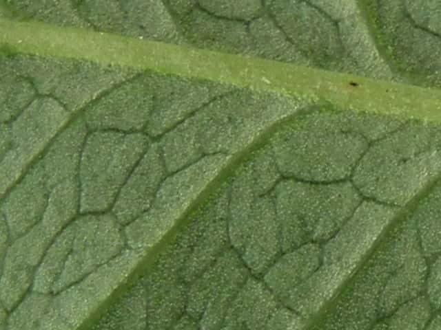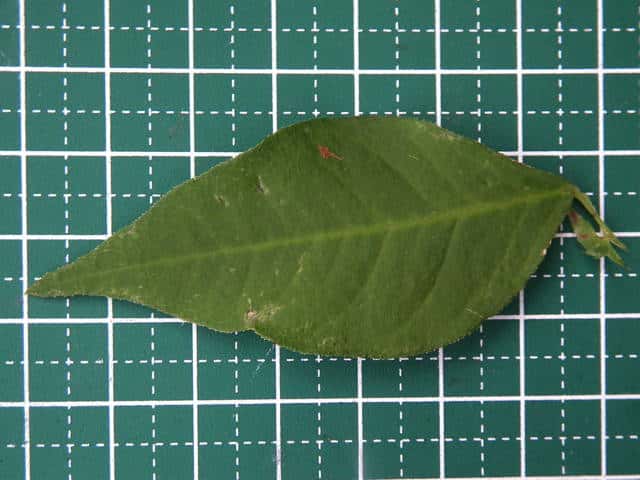 | ▼裏面の主脈上に短毛がある。 | ▼葉柄基部に托葉があり、鋸歯がある。 | |
