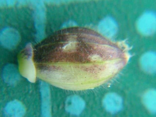| ▼膨らんだ側が第2苞穎。 | ▼第1苞穎は退化、基部に環状に残っている。 | |