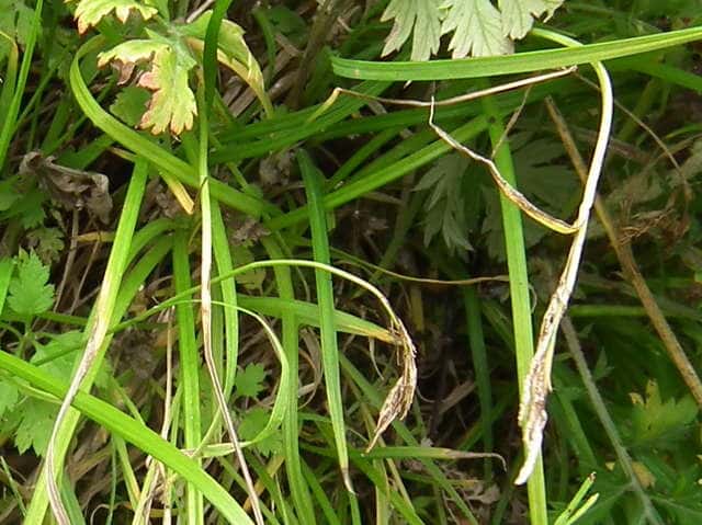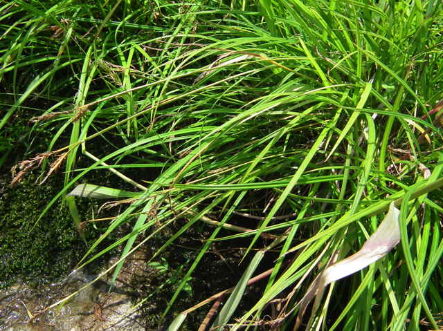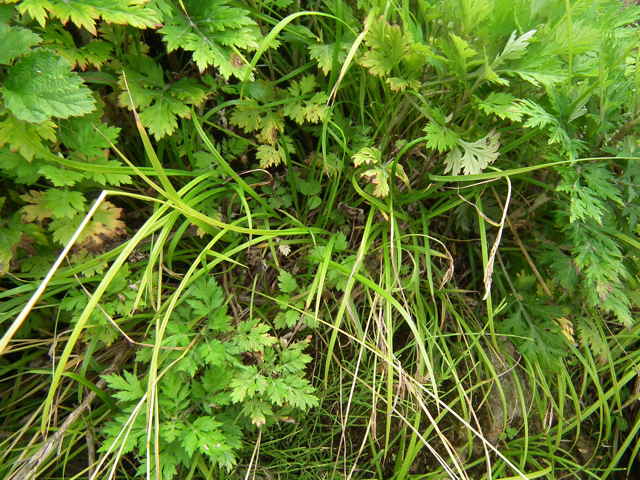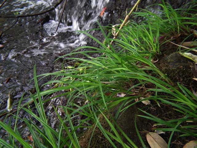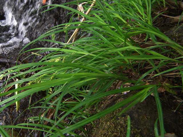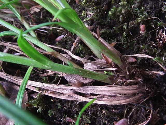 | 多年草 北海道〜九州のシイ・カシ帯〜ブナ帯の渓畔に生える。叢生し短い匐枝を生ずる。基部の鞘は葉身がなく、淡色。葉は幅2.5〜3.5mm。有花茎は高さ20〜40cm、平滑。苞は無鞘、葉身は短い。頂小穂は雄性、線形で長さ1〜2cm。側小穂は雌性で2〜6個、やや接近してつき、長さ1.5〜4cm、幅5〜8mm、先が垂れ下がる。雌鱗片は紫褐色を帯び、果胞の1/2〜1/3長。果胞はやや扁平な3稜形、長さ4〜5mm。果実は果胞にゆるく包まれ、倒卵形で3稜があり、長さ約1.5mm。柱頭は3岐。果期は4〜6月。(日本のスゲ) 学名は、Carex curvicollis カヤツリグサ科スゲ属クロボスゲ節 |
